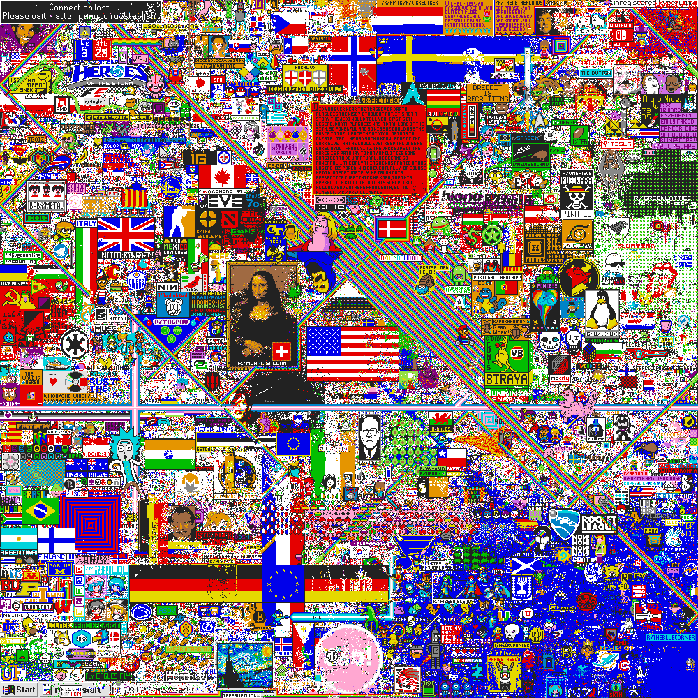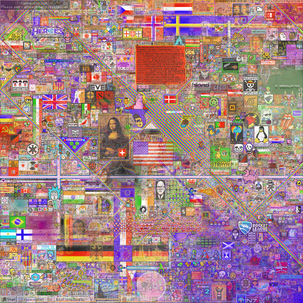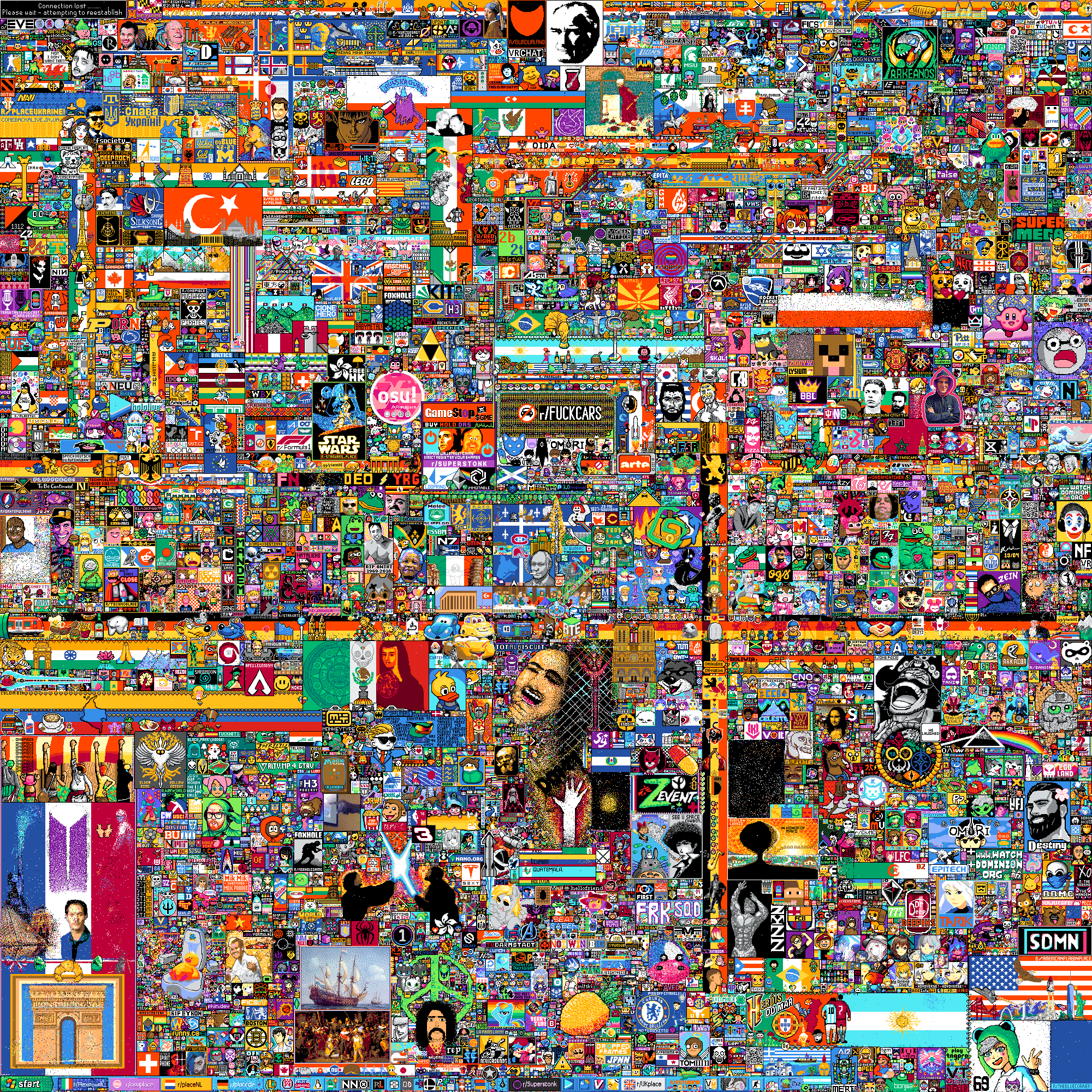 Alex Tsernoh's dataset is a little simpler. It's just a set of canvas images captured at intervals during the event. As with u/opl_'s dataset, it's missing some data from the beginning of the event and the start of the first canvas expansion.